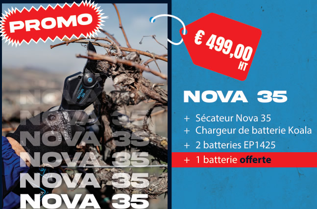 Sécateurs Electriques CAMPAGNOLA STARK M et NOVA 35 Sécateurs sur batterie électrique sans fils PROMO jusqu’au 31/03 Poster le commentaire Annuler la réponseVotre adresse e-mail ne sera pas publiée. Les champs obligatoires sont indiqués avec *Commentaire * Nom * E-mail * Site web